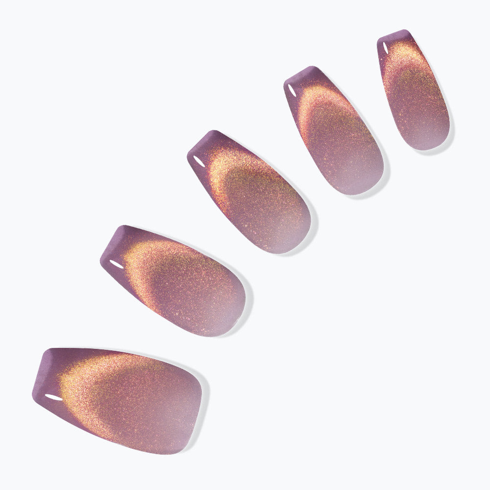 Dashing diva isn't lying about the super strong adhesive; this set lasted me ten days. This set has a beautiful cat eye effect with a cool green base, which looks like jade in the right light.