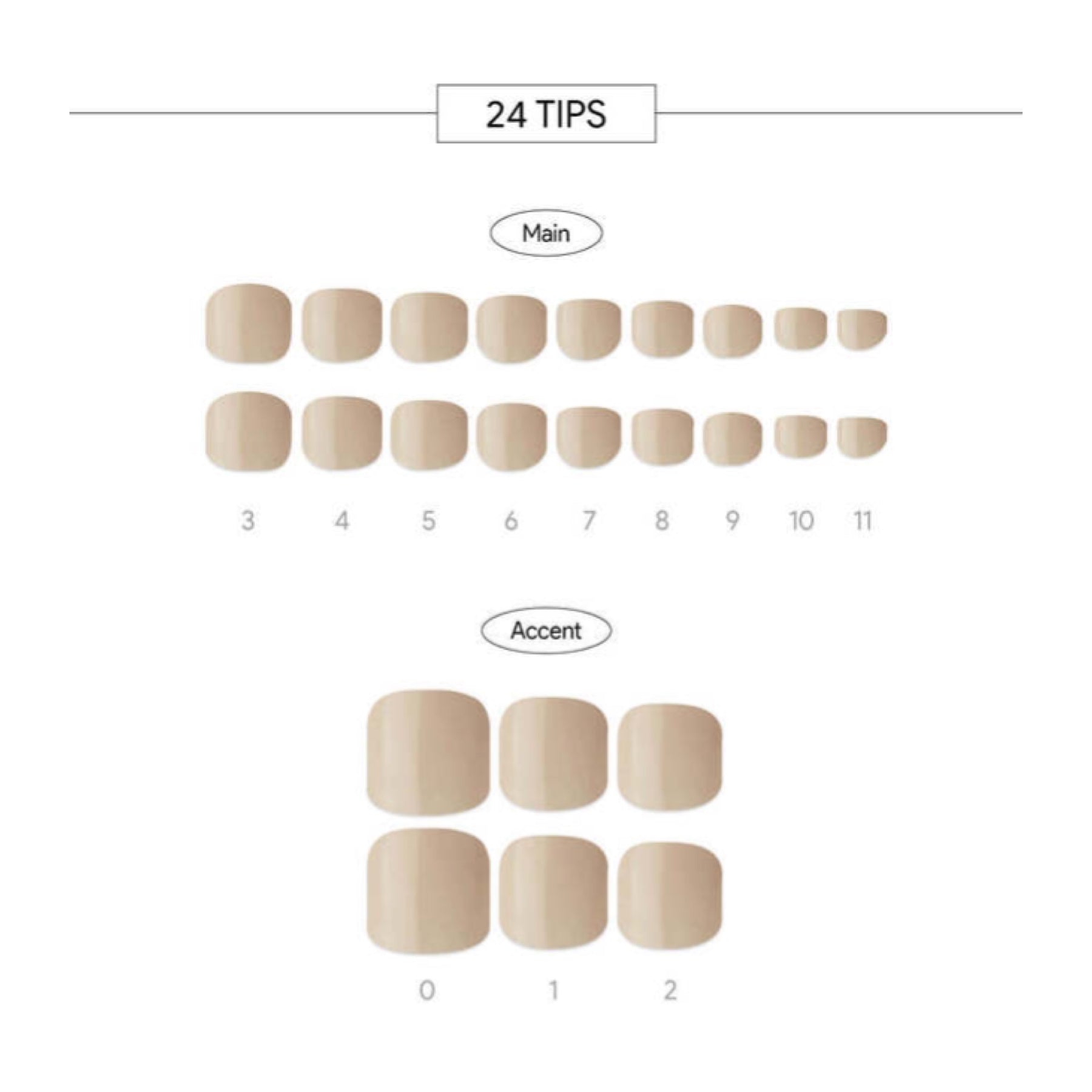 Open package and select the correct size nail for each finger using number key located on the underside of each nail.