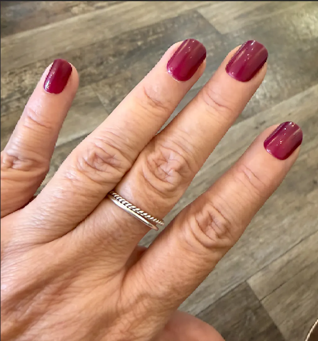 Captivating burgundy nails that draw attention effortlessly. This versatile colour is perfect for creating a variety of daily looks with ease.