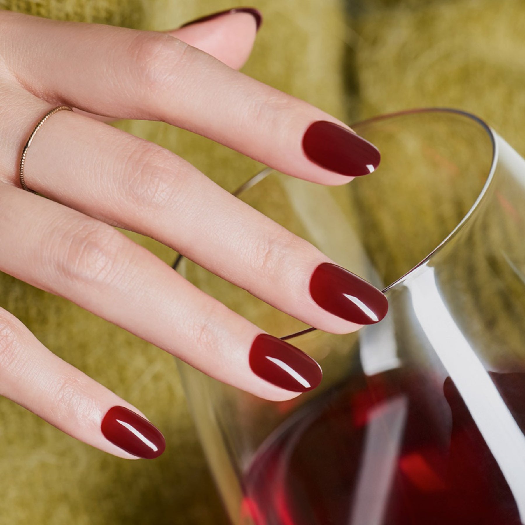 A calm yet captivating burgundy nail design, reminiscent of the rich, deep hue of aged wine.