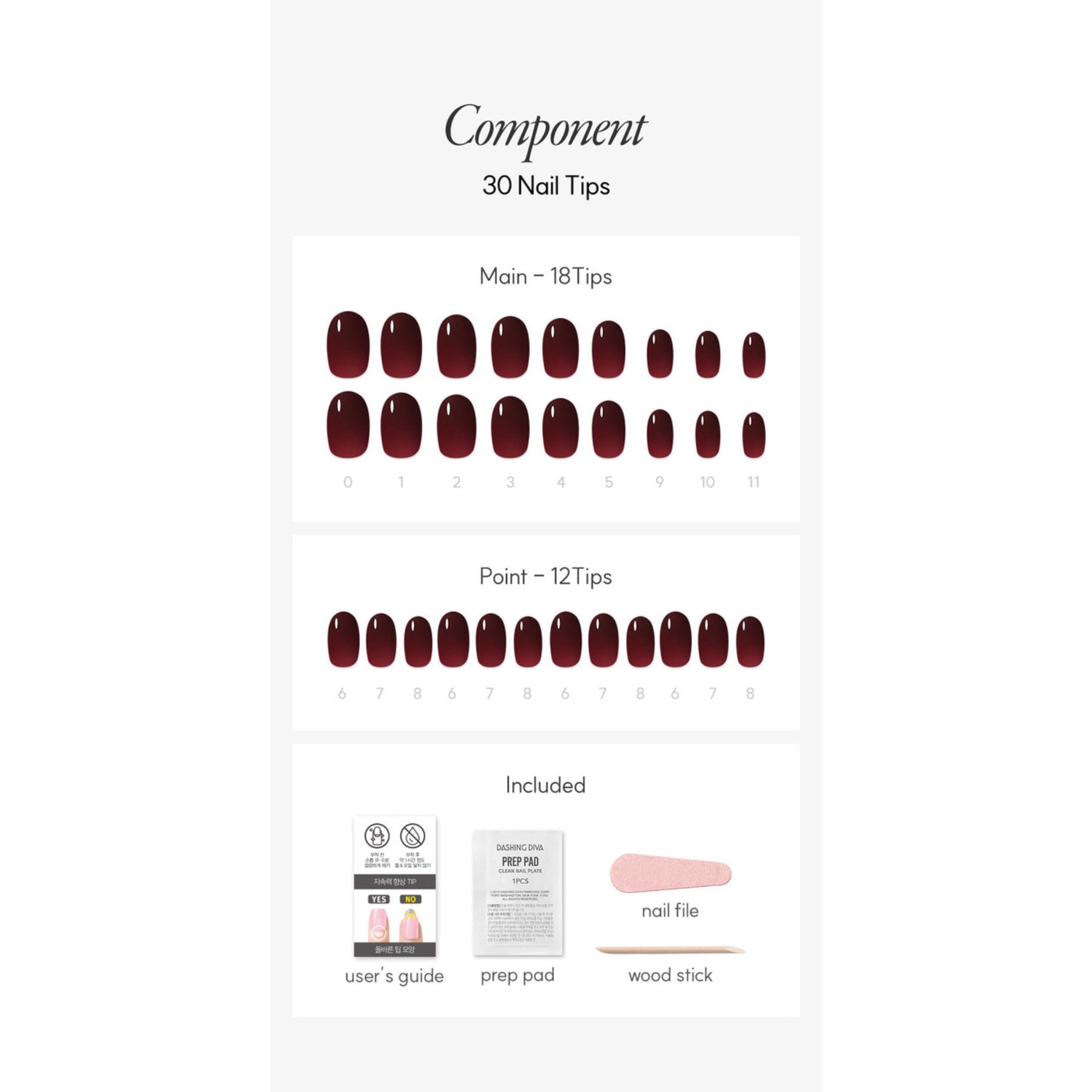 - 30 gel nail tips in 12 sizes