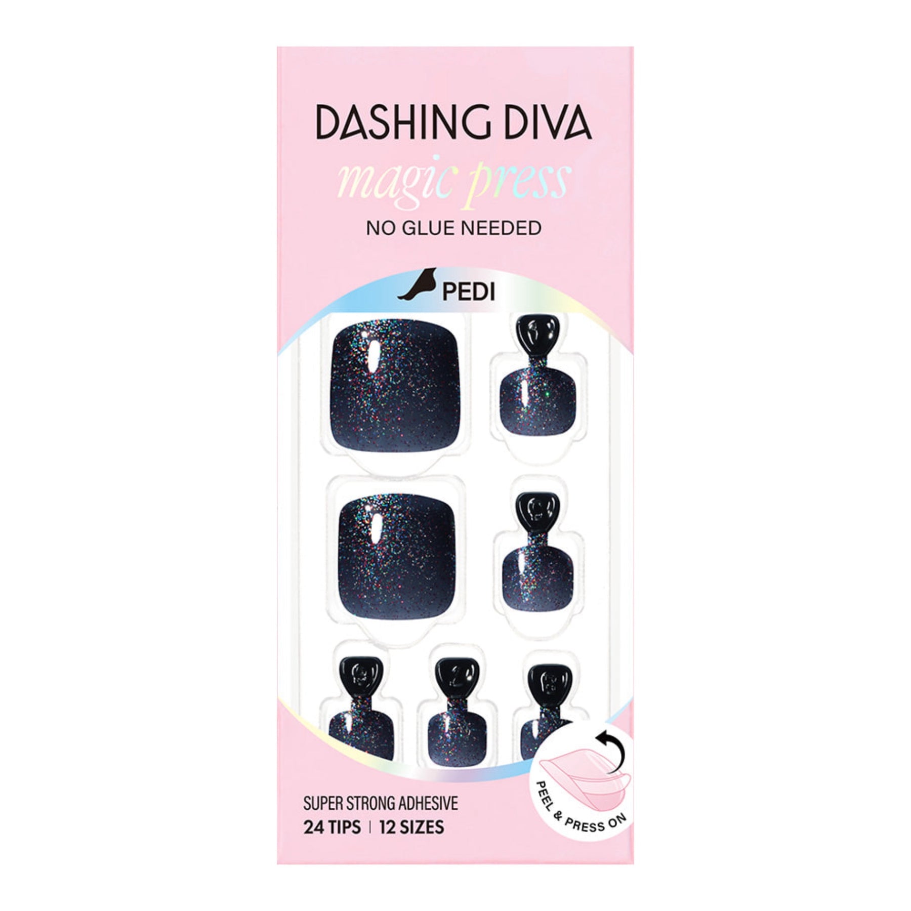 A deep navy shade inspired by the night sky, paired with aurora-like sparkle that evokes a mystical Milky Way — a celestial glitter pedi.