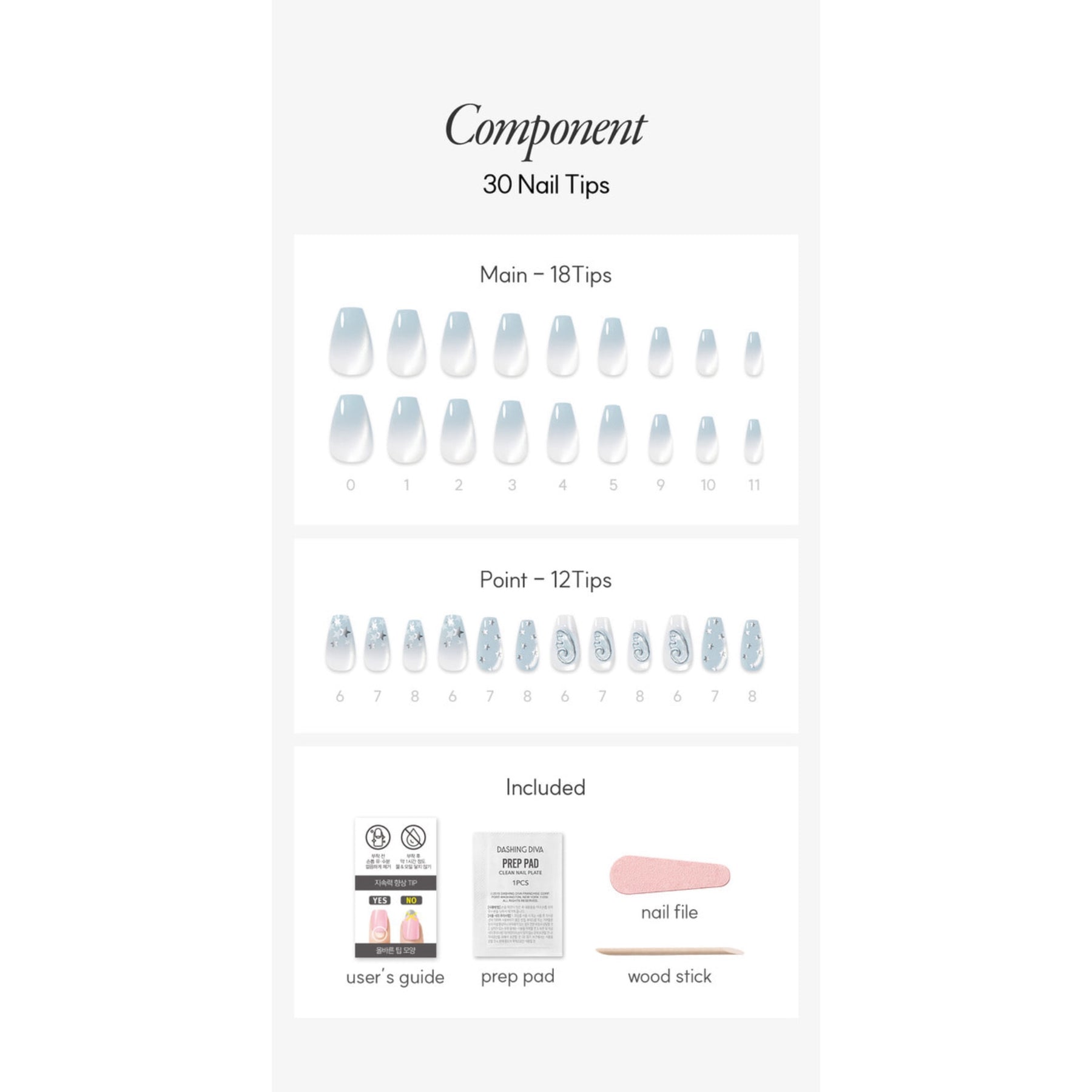 Open package and select the correct size nail for each finger using number key located on the underside of each nail.