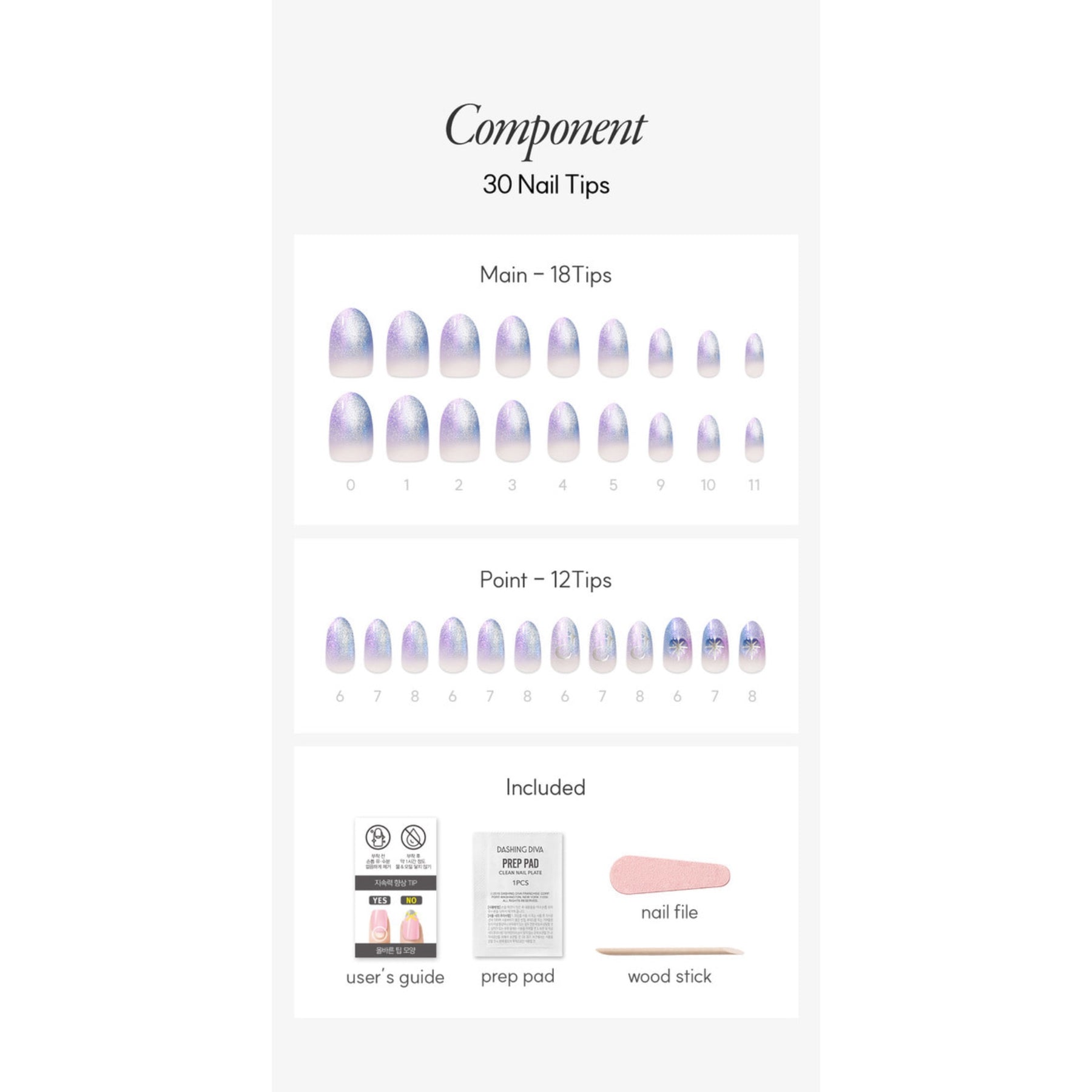 Open package and select the correct size nail for each finger using number key located on the underside of each nail.
