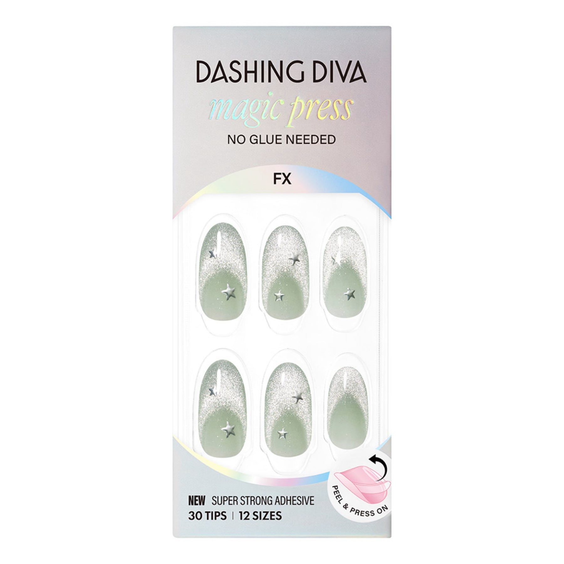 Chic and trendy nails in mint tones, accented with sparkling French magnetic effects and delicate star details that shimmer with every movement.