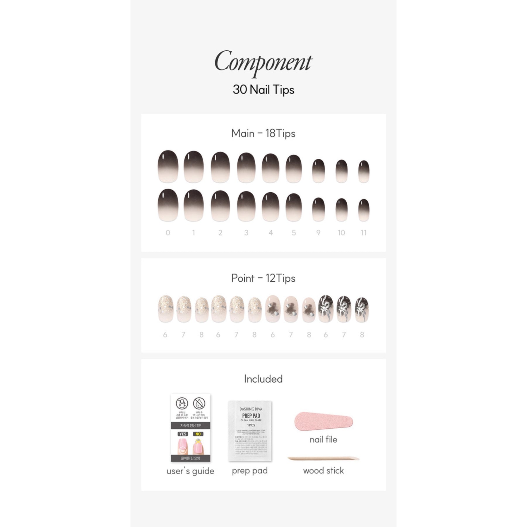 - 30 gel nail tips in 12 sizes